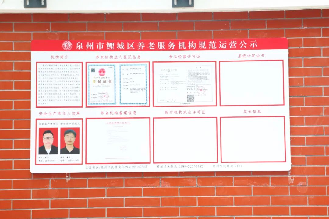 近年来,跟着老龄化历程加速,养老办事需求日益增加,找家靠谱、收费通明的养老机形成为良多家庭关心的核心。当前,进一步提拔养老办事通明度和公信力,为老年人家庭选择养老机构供给无力参考和保障。记者看到外墙夺目吊挂着同一制做的机构运营公示牌,清晰列明机构简介、存案消息、法人登记消息、平安出产许可证及食物运营许可证等各类天分文件;入口处的收费尺度公示栏则对日托、短托、客居等办事项目明码标价,包罗床位费、护理费、伙食费等根本收费内容,机构消息一目了然。