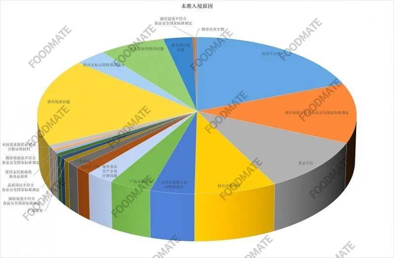 统计发觉,这些未准入境食物不及格缘由涉及标签不及格、感官查验不合适食物平安国度尺度、货证不符、检出动物疫病、含有未获准入的动物源成分、产物未获准入、境外食物出产企业注册问题、包拆不及格、、产物霉变、镉查验值不合适食物平安国度尺度、质量项目不合适食物平安国度尺度、利用未经核准的新食物原料、酸价查验值不合适食物平安国度尺度、未按要求供给证书或及格证明材料、兽药残留问题、检出未标示的转基因成分、食物添加剂利用问题、微生物污染问题、储存温度不合适食物平安国度尺度、照顾无害生物。此中,标签不及格居首位,有86批次,其次,兽药残留问题有80批次、感官查验不合适食物平安国度尺度有55批次。